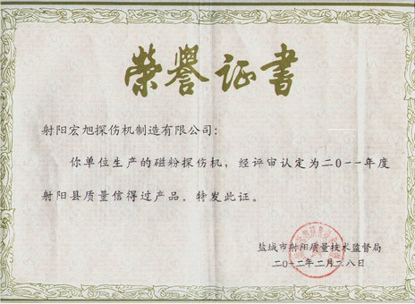 射陽宏旭探傷機(jī)制造有限公司-磁粉探傷機(jī)丨磁粉探傷儀丨退磁機(jī) 等產(chǎn)品均通過:ISO9001:2000 認(rèn)證,符合JB/T8290-2011標(biāo)準(zhǔn),產(chǎn)品一律實行三包,“誠信鑄就品質(zhì),創(chuàng)新打造未來”是我們的經(jīng)營理念,熱線電話:0515-82354499。